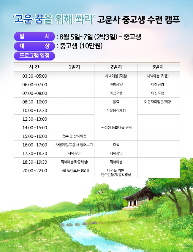 '고운 꿈을 위해 쏴라' 고운사 중고생 수련 캠프 > 공지사항